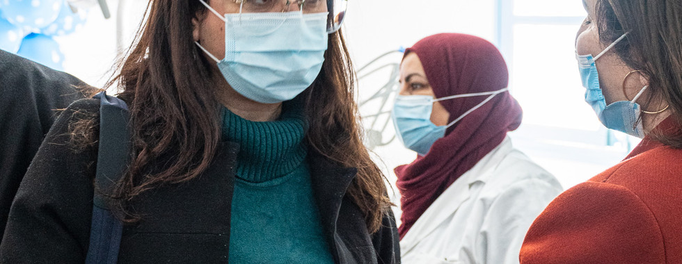 La visite s’est poursuive dans la circonscription sanitaire (CS) d'El Haouaria, dirigée par M. Neji Hnaiech, administrateur, et la Dr Nejla Hlel, médecin chef. La visite a débuté par la présentation de la CS et du rapport annuel 2021, et s’est poursuivie par une visite commentée des principaux services de l’hôpital de circonscription (urgences, service interne, maternité, radiologie et laboratoire) ainsi que de la PMI, où ont lieu les consultations externes et les activités préventives (vaccination, pré-natal… ).